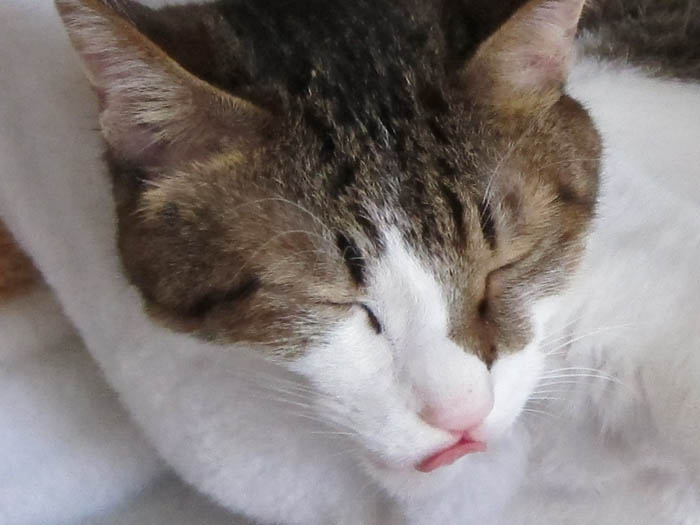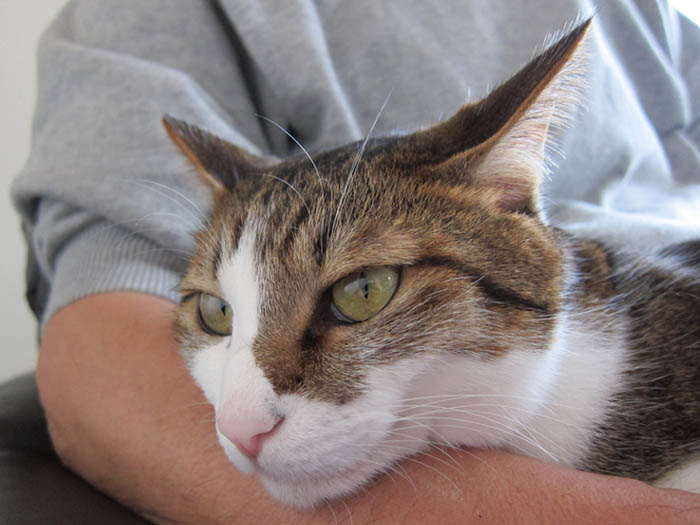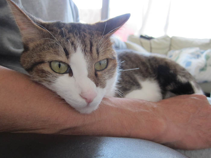 私の膝の上で寝ている時、私が動くと文句を言うくせに、