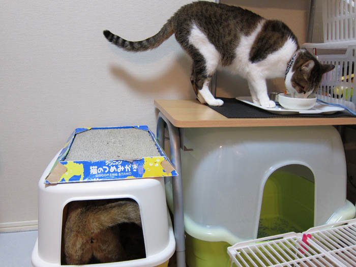 トレイの住み分けによる2匹それぞれの縄張り確保を
