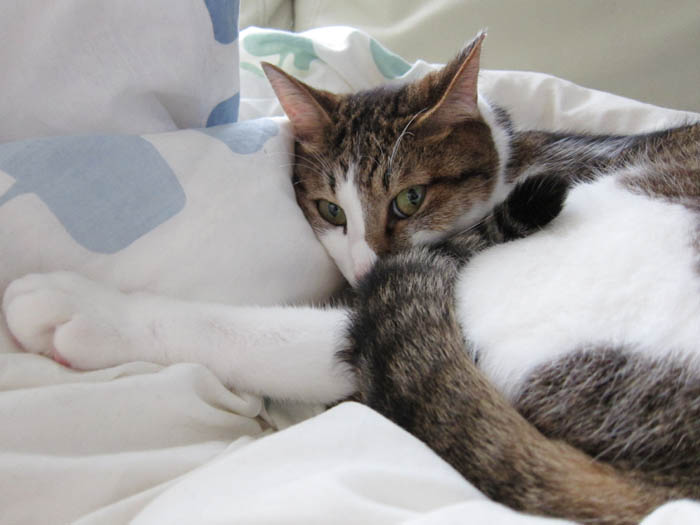 羽毛布団を占領しているぽっけ♂。