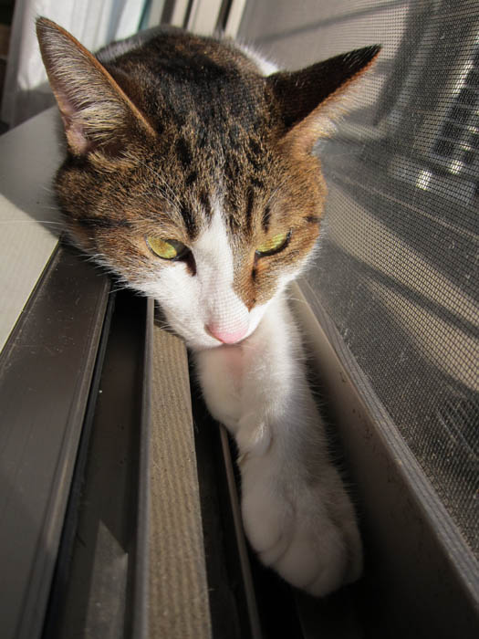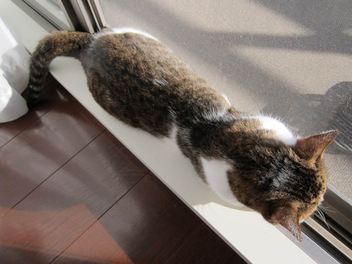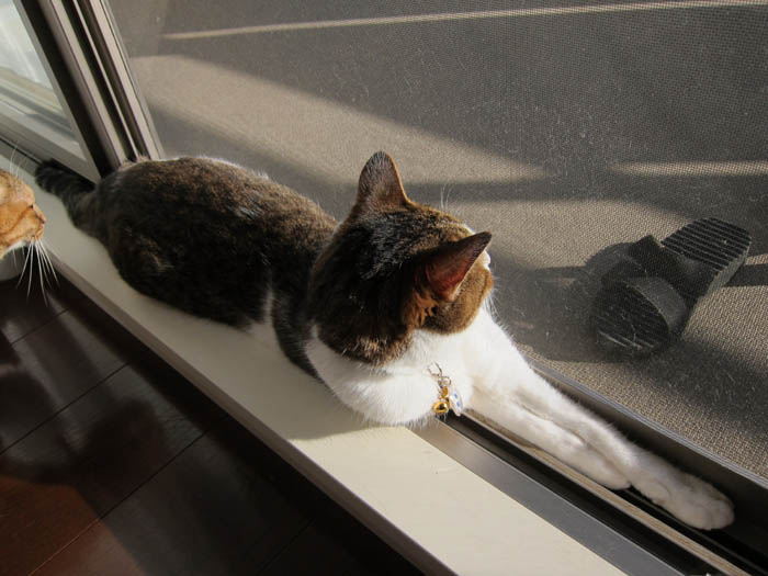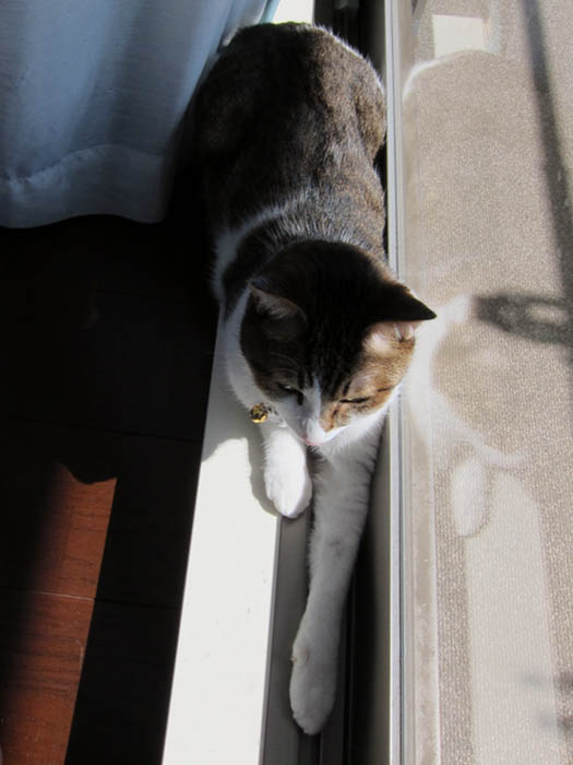 お昼すぎにぽっけ♂は窓とカーテンの間に入りこみ、