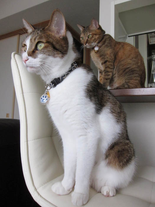 2009年 9/30(水) 410日目のぴっち♀とぽっけ♂ ~キッチン探検隊~キッチンでごはんを狙う2匹。ゴハン将軍ぽっけ♂はぴっち♀の活躍を見守り中。