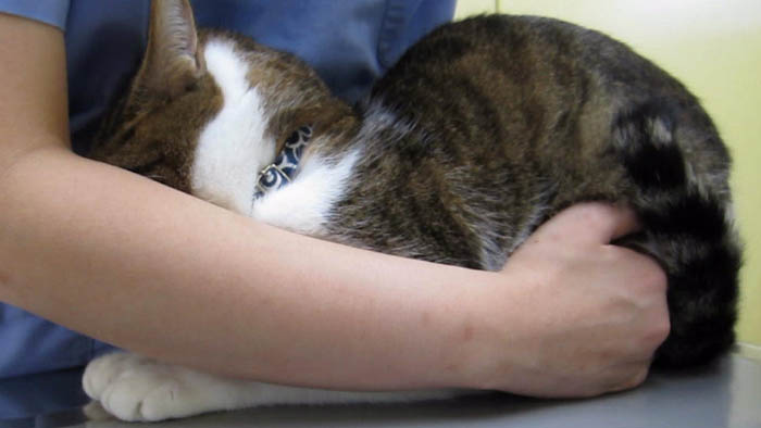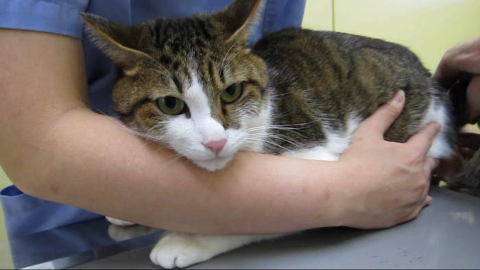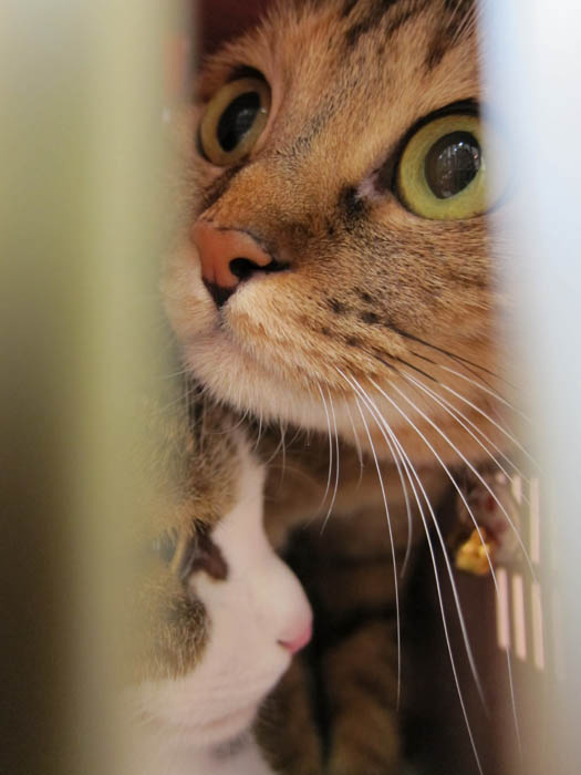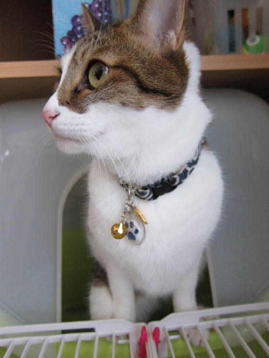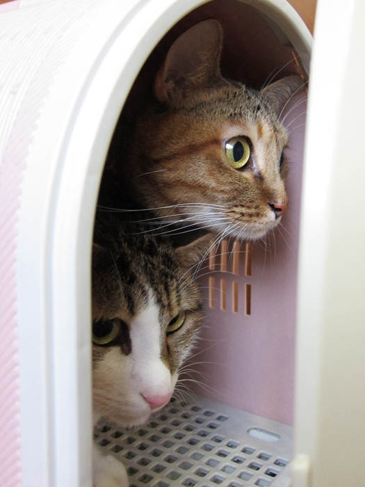 ぽっけ♂がキャリーの中央にのっしりと座り、