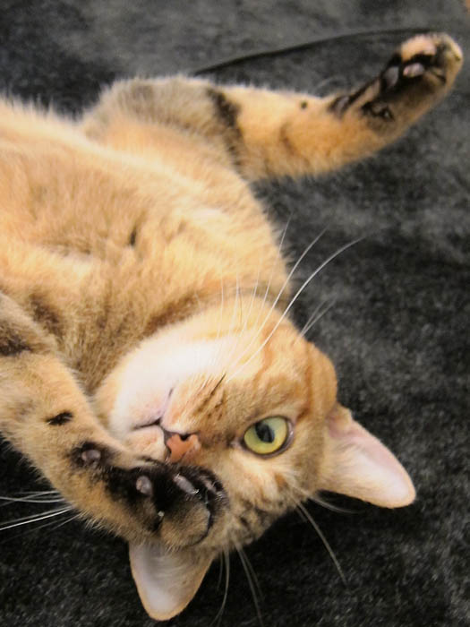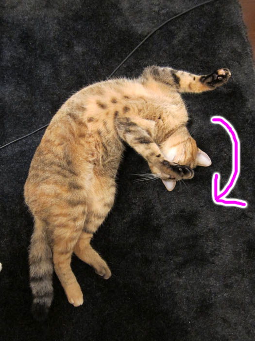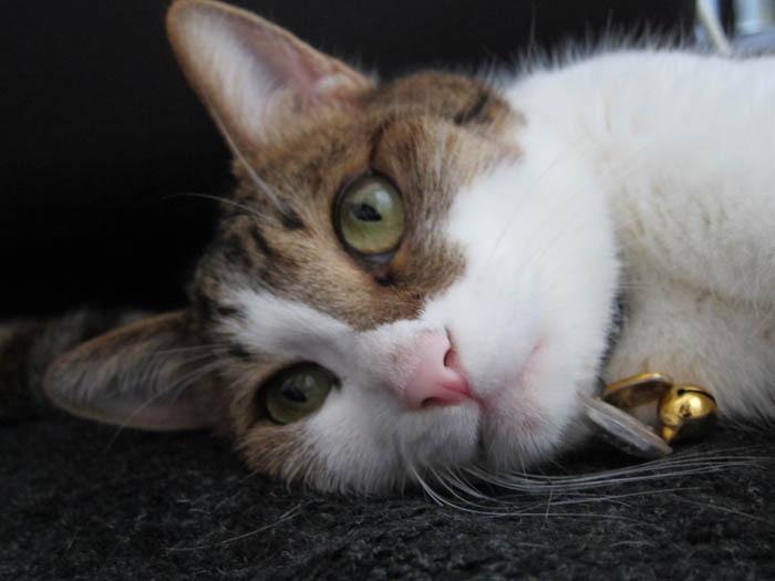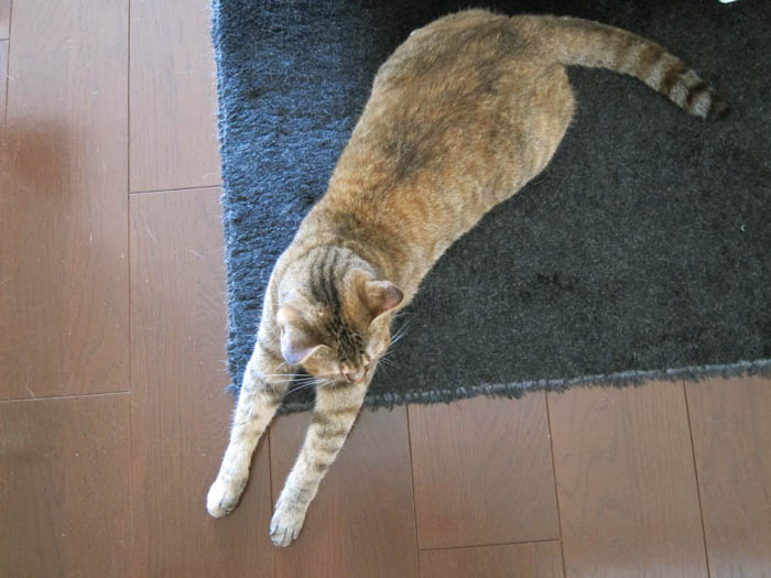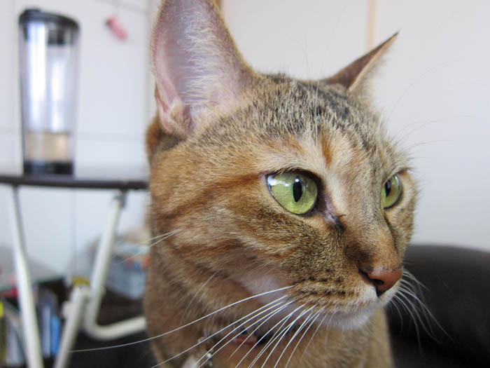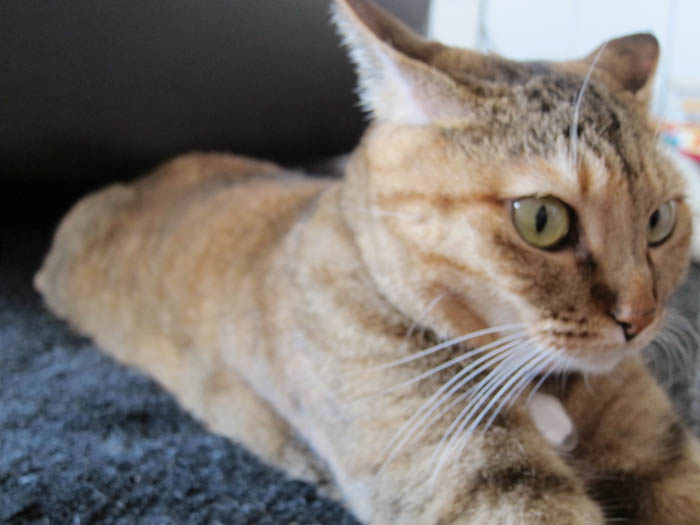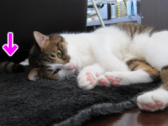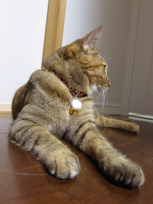 の足をベッドにお昼寝していたぴっち♀。席を立つ際に、REI