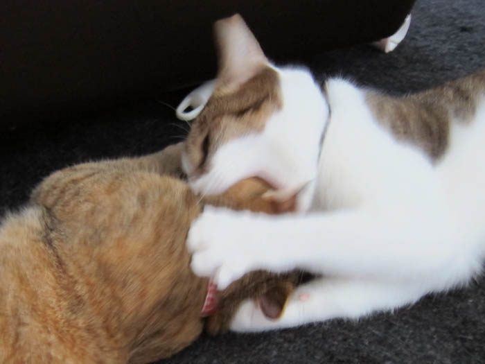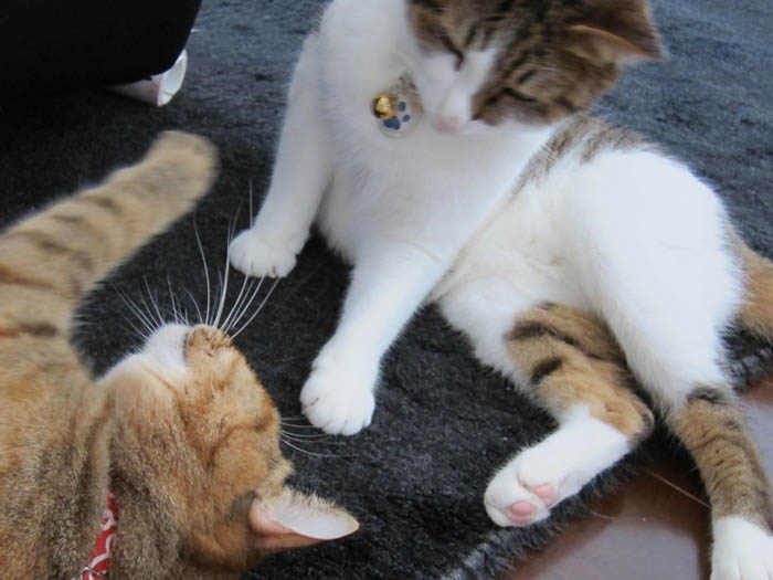 の間にやってきて、2匹が落ち着いてしまいました。