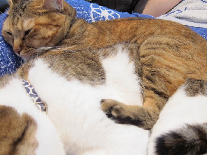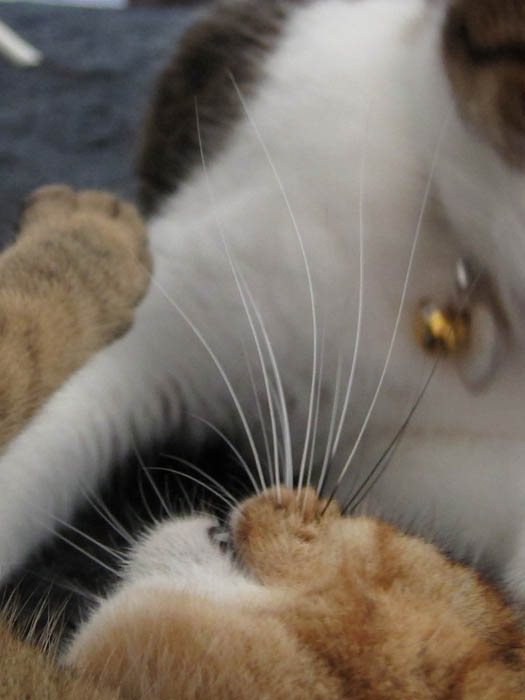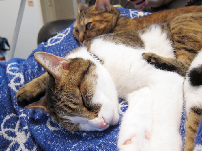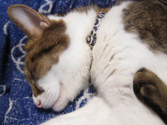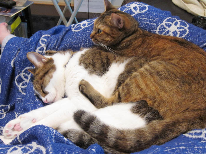 2009年 9/16(水) 396日目のぴっち♀とぽっけ♂ ~脳内補完で……~猫ベッドで眠る2匹のポーズを脳内補完すると……。ちょっぴり楽しい(