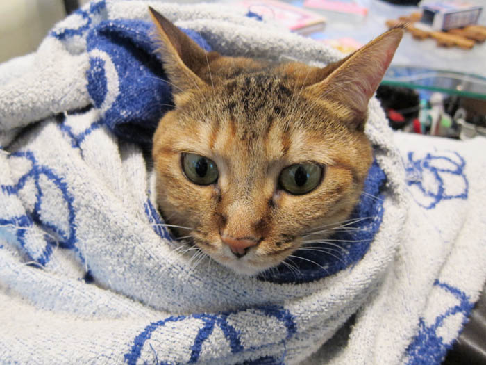 がぴっち♀をタオルケットでくるくると包んでいきました。
