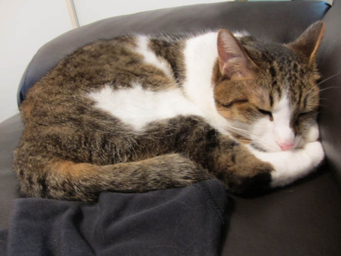 私の隣の席で、丸くなってのお昼寝中。