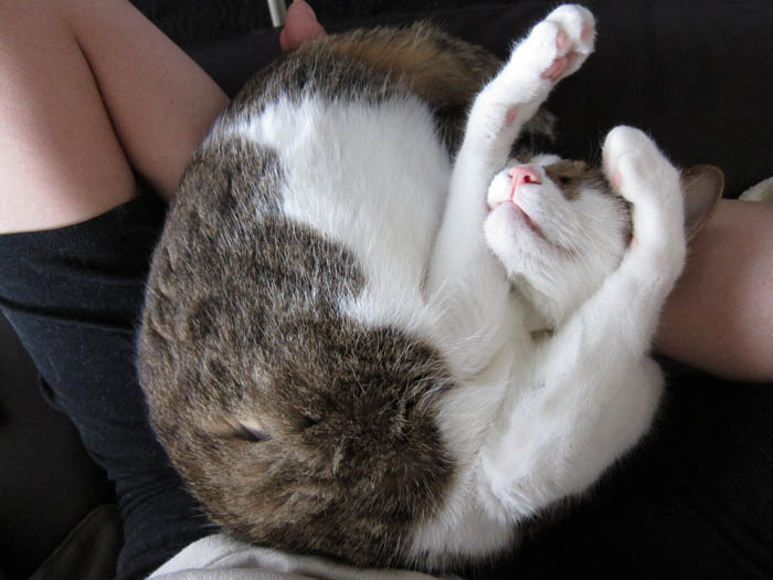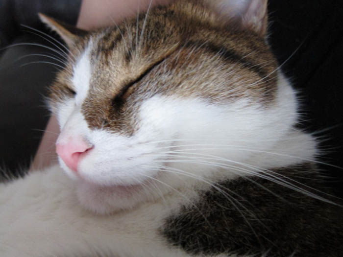 の膝の上で、お昼寝に勤しむぽっけ♂。姿勢が悪い、と思われるかも知れませんが、