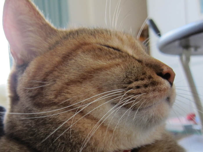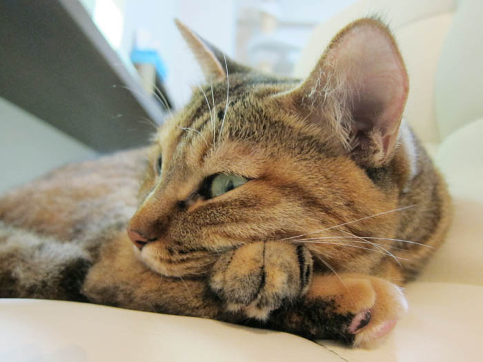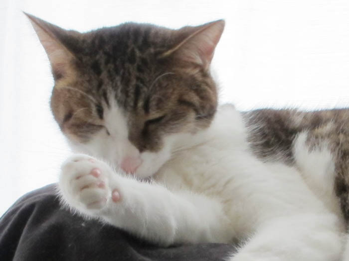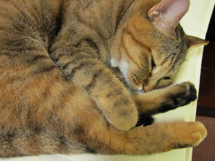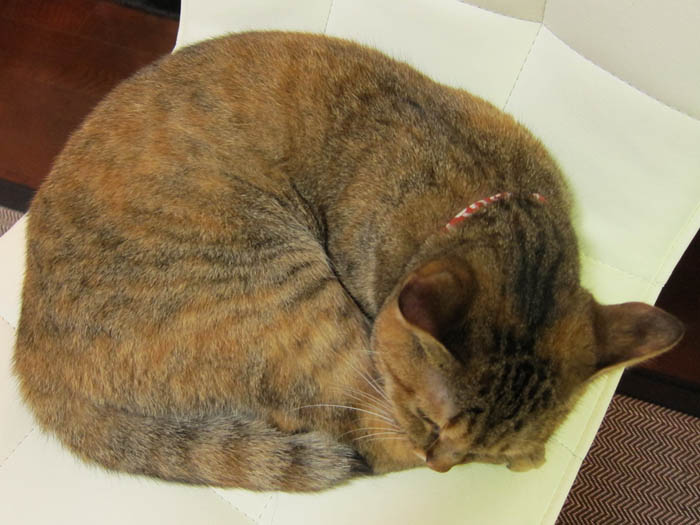 2009年 8/29(土) 378日目のぴっち♀とぽっけ♂ ~ぽっけ♂のお気に入り~新規写真追加。ぽっけ♂がお昼寝の際にとてもこだわる【顎乗せ】場所。猫タワーでは……。