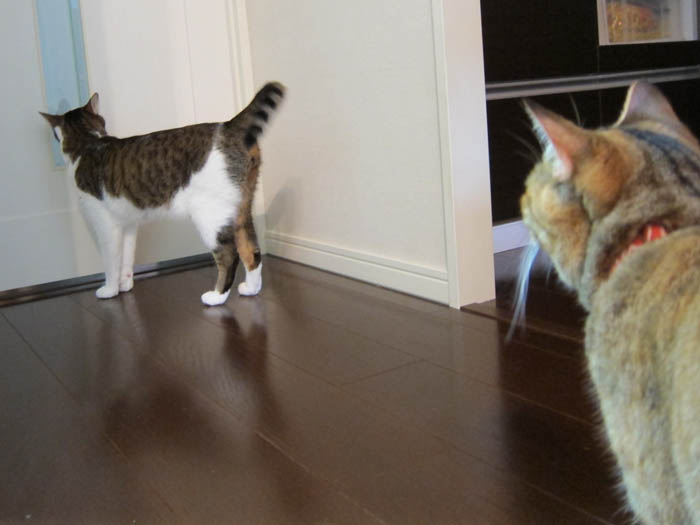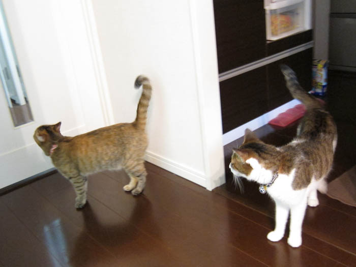 2010年 8/27(金) 741日目のぴっち♀とぽっけ♂ ~ぽっけ♂アシスト~トイレの砂かけにこだわりがありすぎるぽっけ♂。普通なぴっち♀には、ちょっと不満があるようで……。