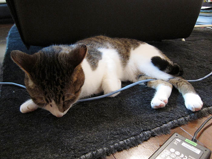 ケーブル類を噛み千切ったら、許さないぞ~。