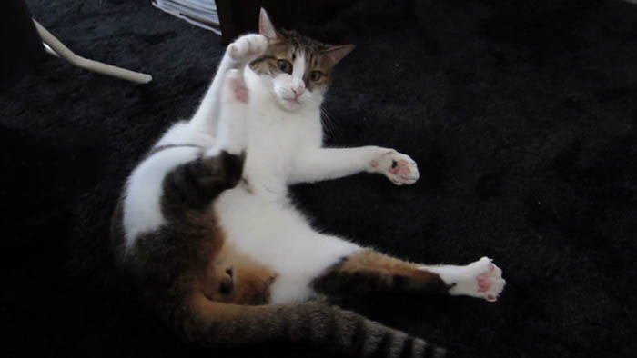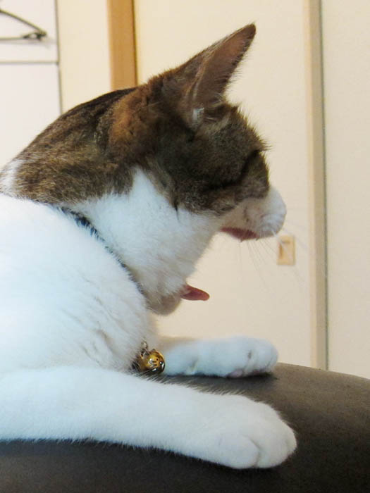 をかけて伸びてみたり、毛並みのお手入れをしてみたりと忙しそうにしています。