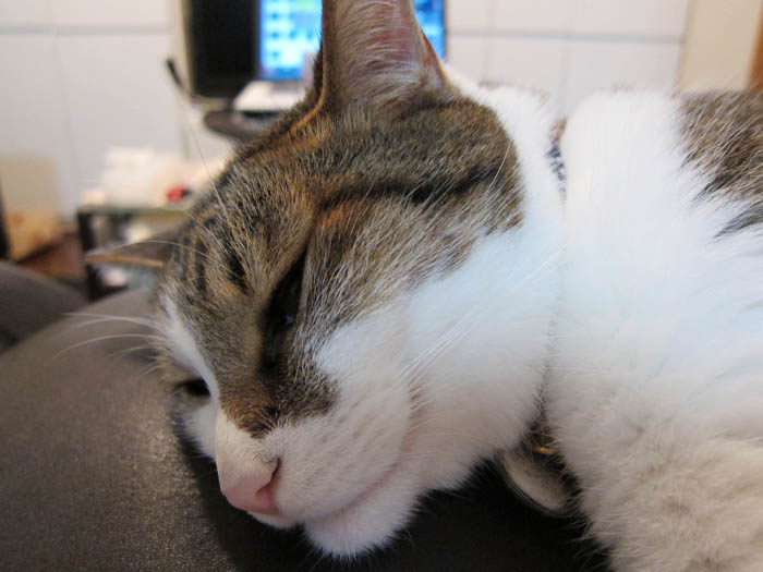 今にも眠ってしまいそうなぽっけ♂。