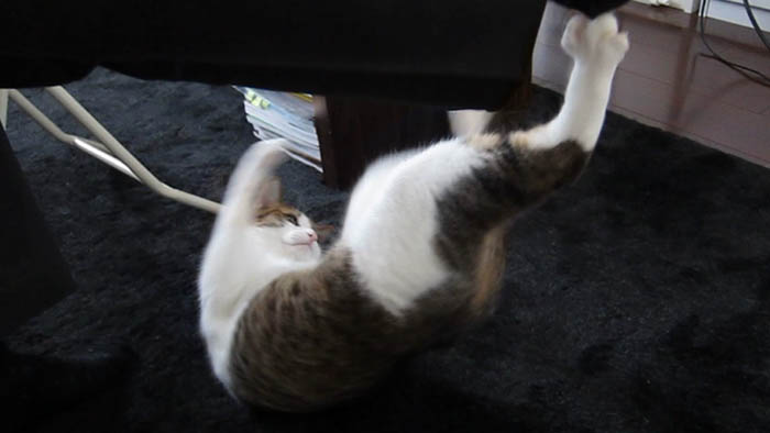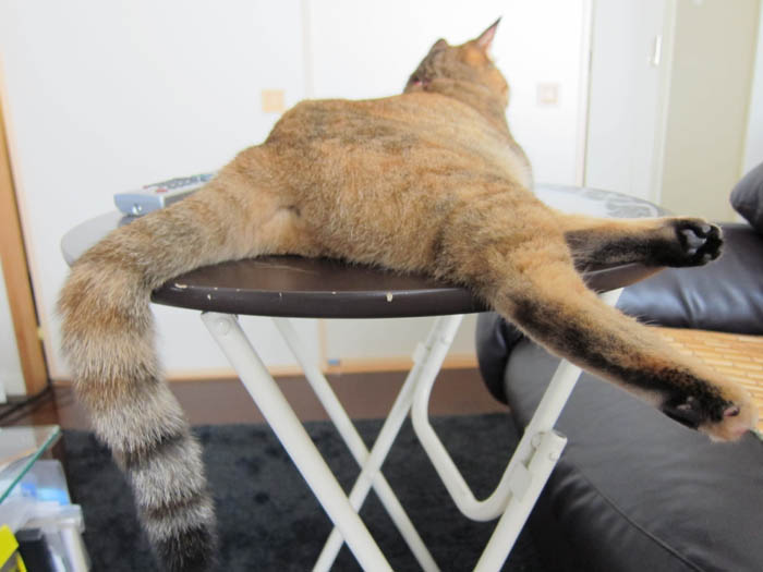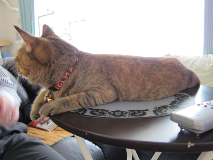 ローテーブルに左後足
