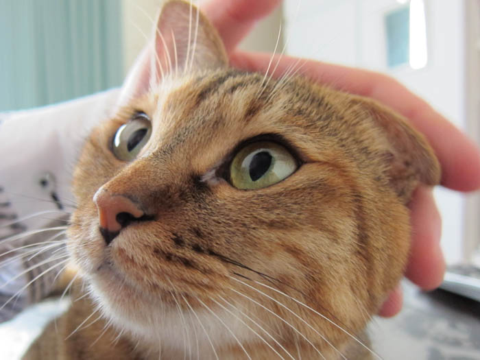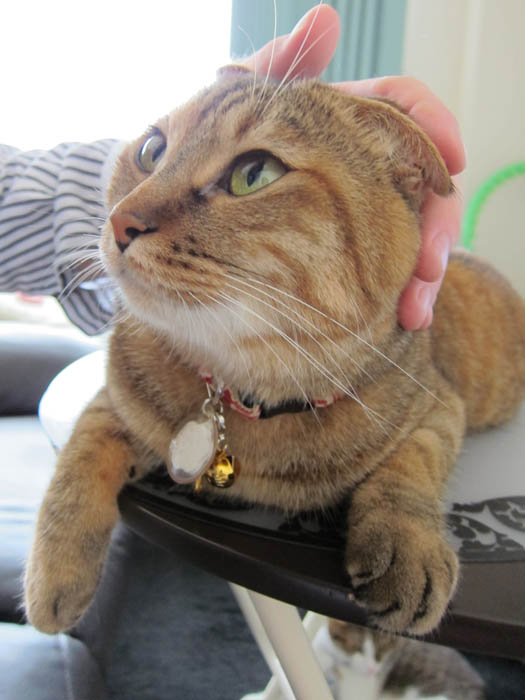撫でられて耳がペターン。