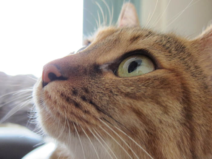 お鼻のすぐ真上に三角▲の水濡れ模様ができていて、