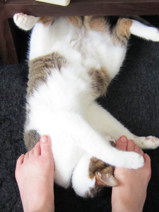 の足が大好物になります。左右にコロコロ転がり始めた時が、