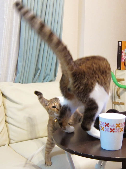 8/21(木) 5日目のぴっち♀とぽっけ♂ ~猫タワーと駆虫薬~