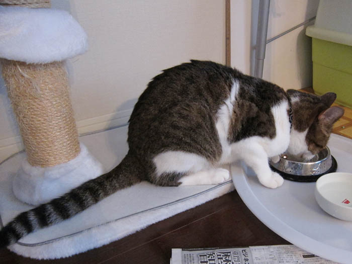大人しく待っていたご褒美にカリカリをもらい、