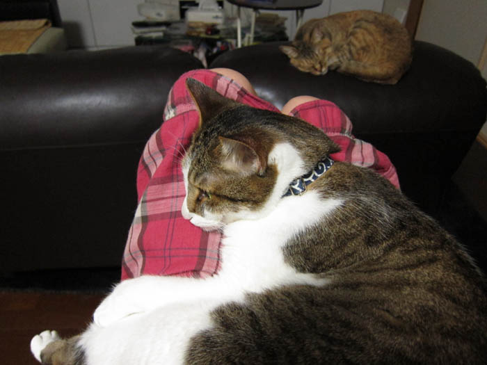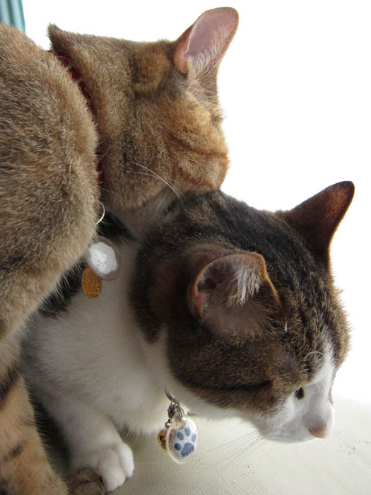 今日は朝から2匹にモテモテ(