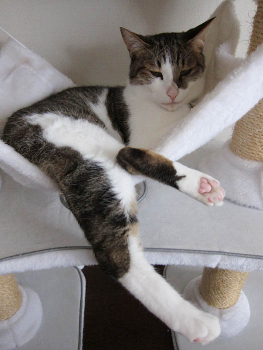 猫タワーのハンモックでマッタリ中。