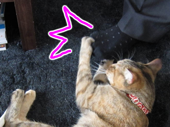私の指先に前足を伸ばし、