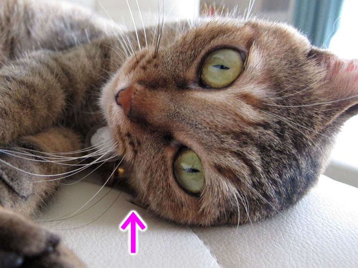 左頬の所から、ペタンとした耳の先が