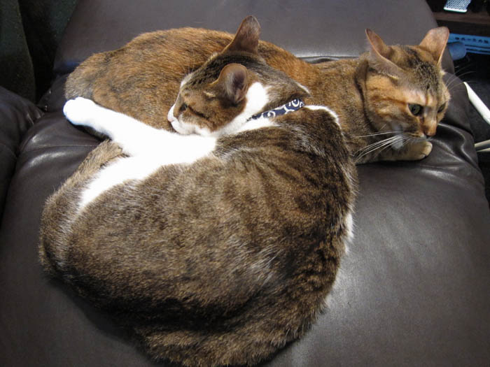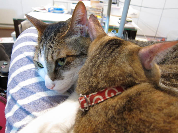 2010年 5/9(日) 631日目のぴっち♀とぽっけ♂ ~怖い、寝姿~新規写真追加。猫ベッドでの2匹。ちょっとホラーなぽっけ♂。ぴっち♀はちゃっかりさん。