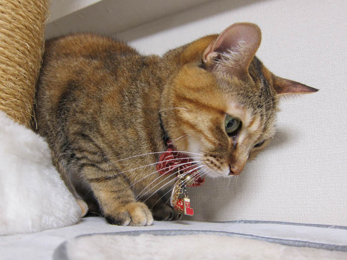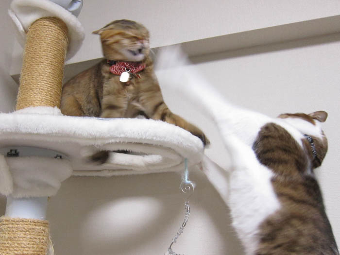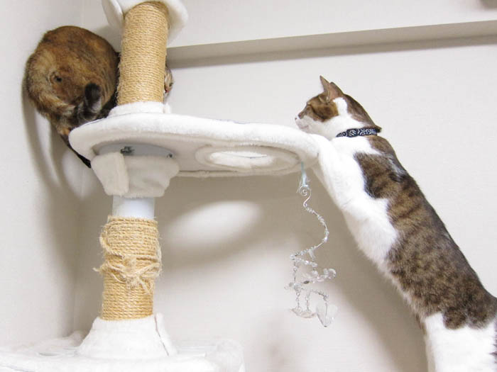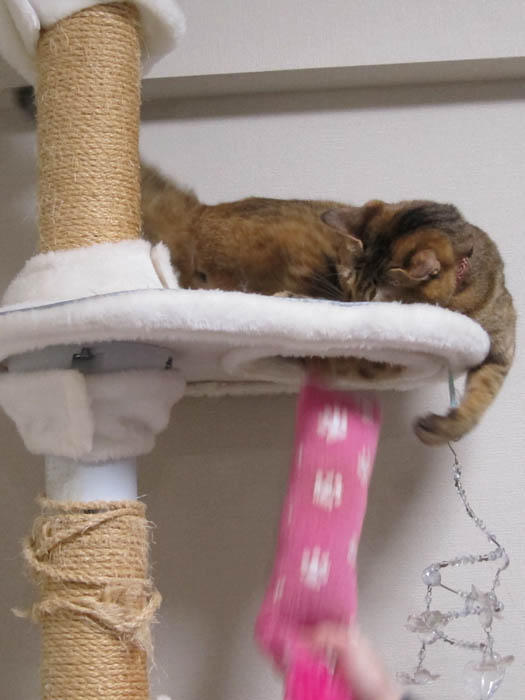 ただいま、猫タワー【中段】の柱での