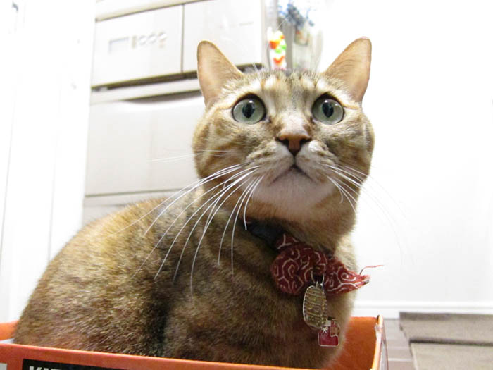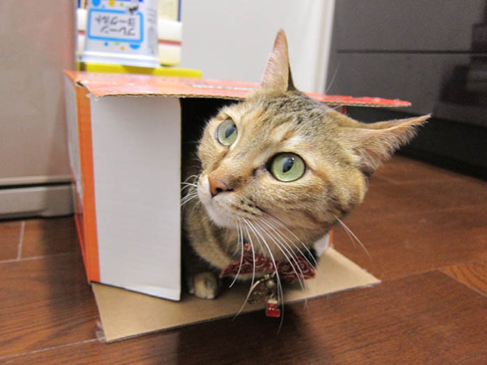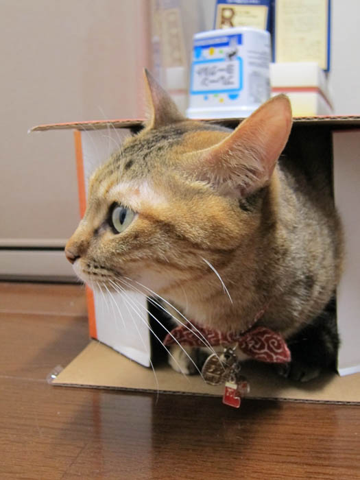 人間の食事よりも、箱が気になるようで、