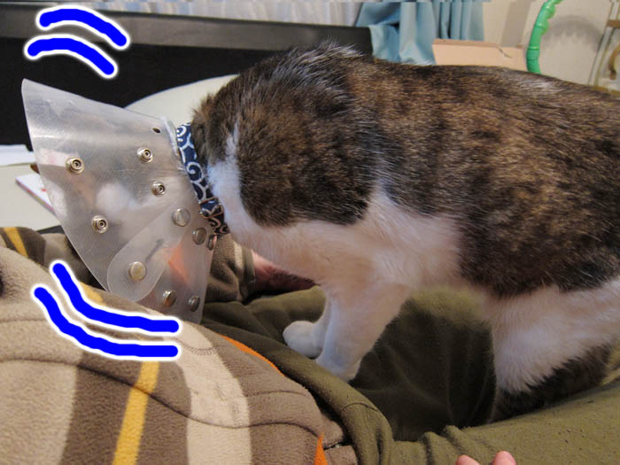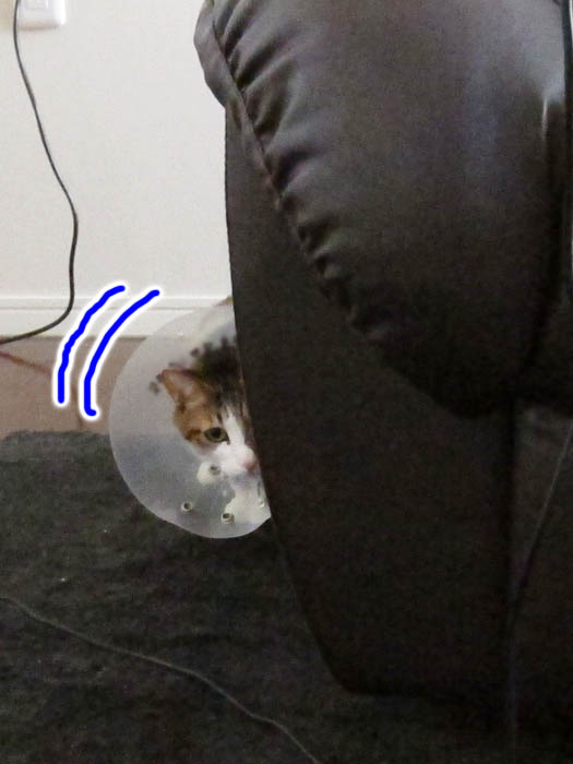 セルフ撮影はお尻と、耳先、前足の先しか映らず