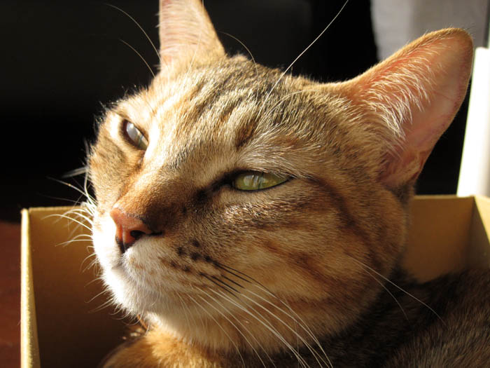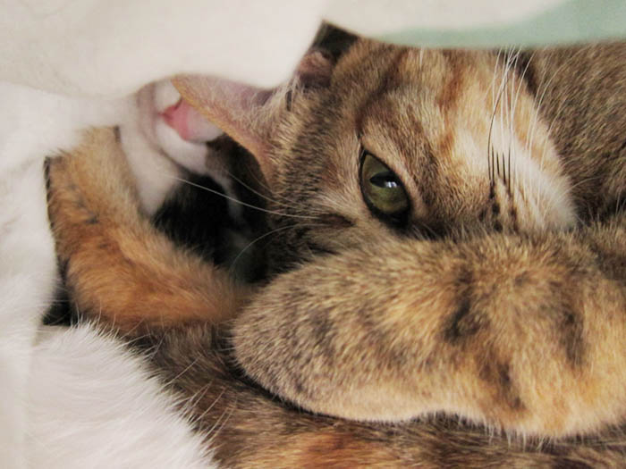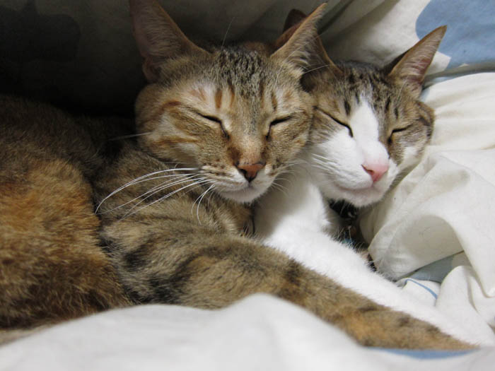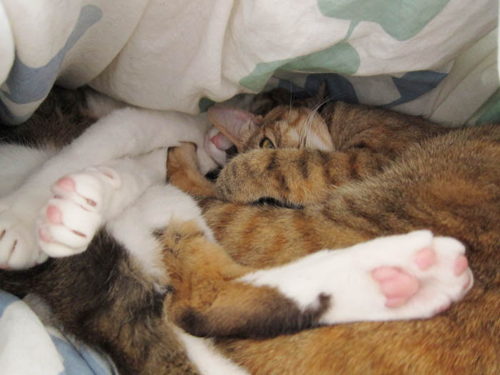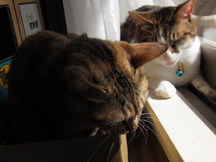 2010年 3/10(水) 571日目のぴっち♀とぽっけ♂ ~久々のご開帳~新規写真追加。自宅警備猫のぽっけ♂。手術から2ヵ月半ぶりのぴっち♀のお腹の毛の生え具合。