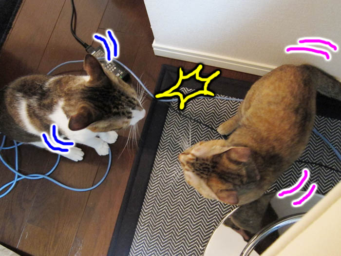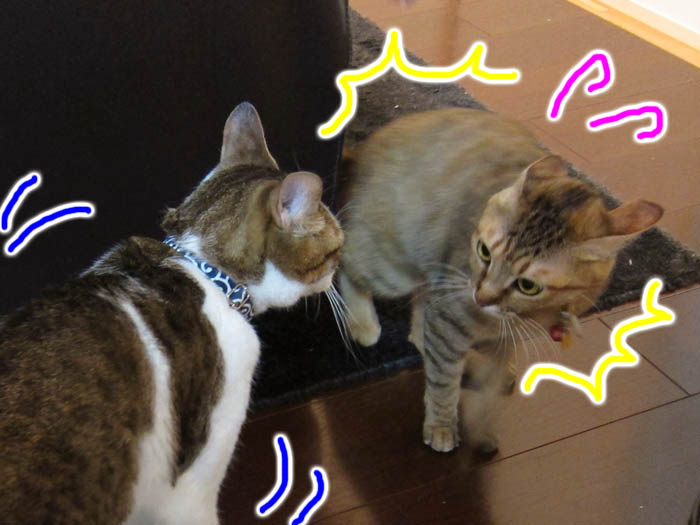 2010年 3/19(金) 580日目のぴっち♀とぽっけ♂ ~猫も木から落ちる~ぽっけ♂がソファーから落下。猫なのに……。ぴっち♀VS私