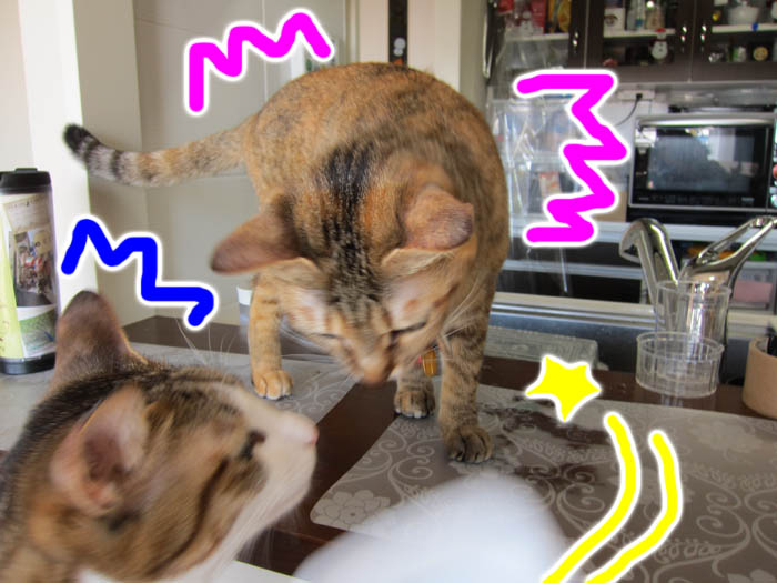 8/21(木) 5日目のぴっち♀とぽっけ♂ ~猫タワーと駆虫薬~