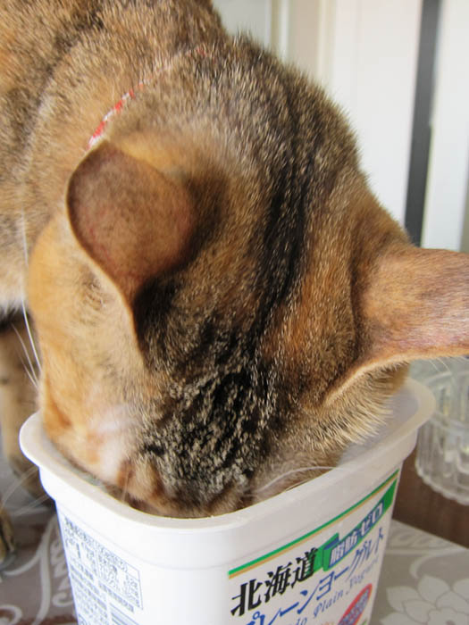 」前回、顔の周りにヨーグルトがついてしまったので、