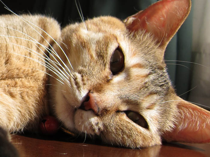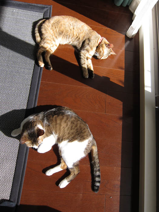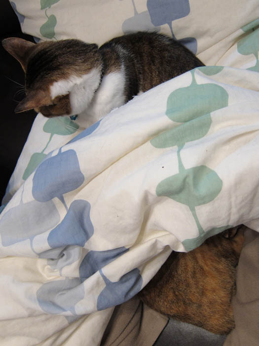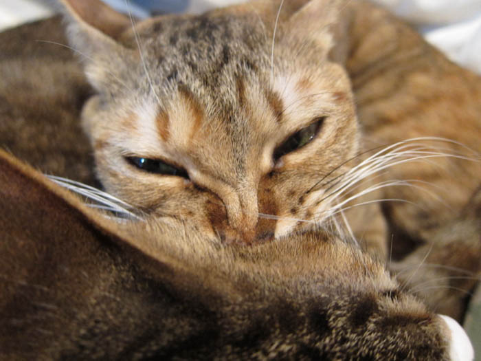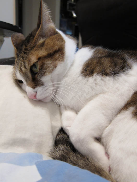 2010年 3/3(水) 564日目のぴっち♀とぽっけ♂ ~持ちつ持たれつ~新規写真追加。猫ベッドで耳ペタンなぽっけ♂と肉球