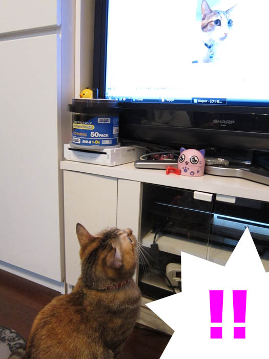 今日初めてぽっけ♂が映っていることに気づいたようです。