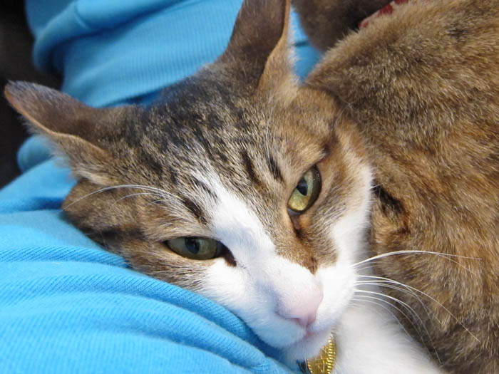 の膝は2匹に大人気。ぴっち♀はぽっけ♂の体の上に
