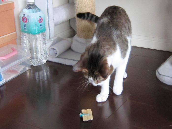 2010年 5/24(月) 646日目のぴっち♀とぽっけ♂ ~ぽっけ♂と一味唐辛子~ぽっけ♂の転がし遊びの対象は……。それは転がすものでも、床に落とすものでもありません。