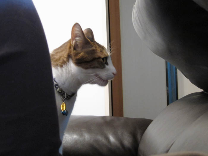 食後はソファーの背もたれの上で一休みした後、