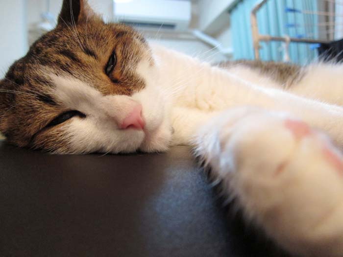 香箱座り……と思いきや、左前足