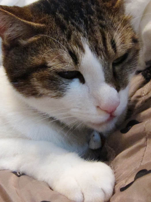 が泊まりに来ています。ぽっけ♂は羽毛布団をかけている母親