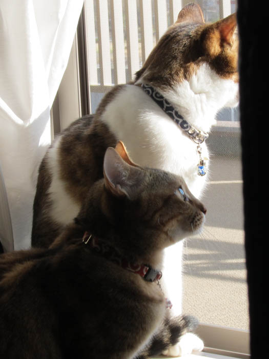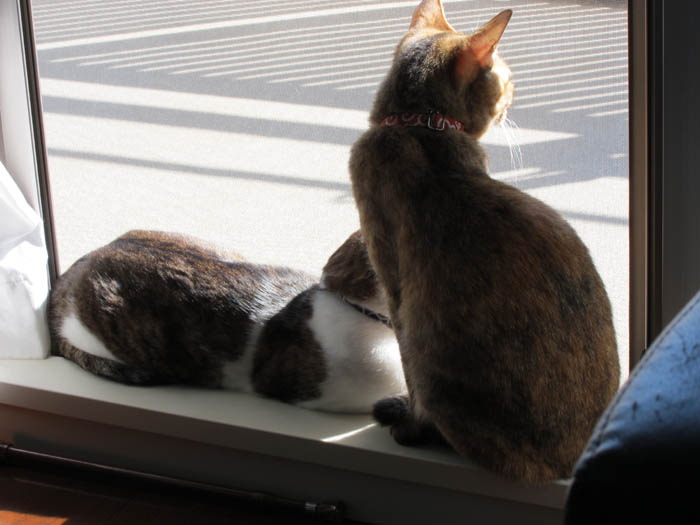 暖かい時間に窓を開けていると、早速集合した2匹。