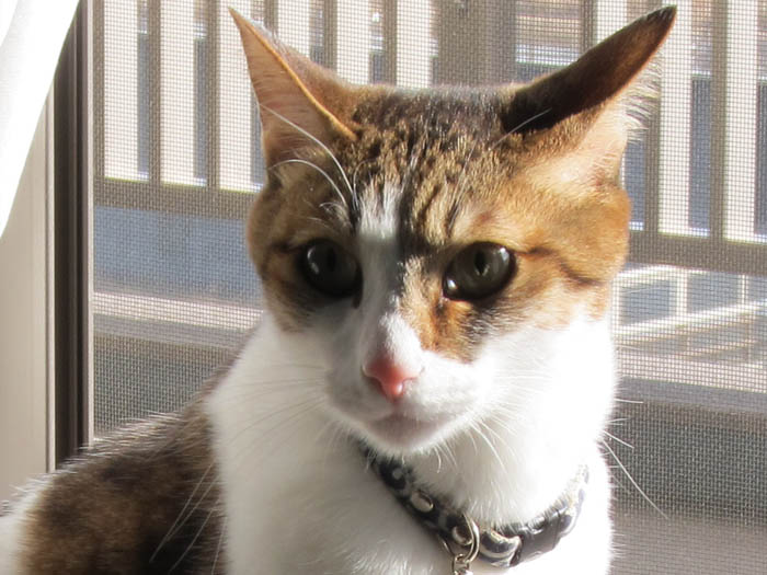虫に興味深々で、網戸越しにパンチしたり、