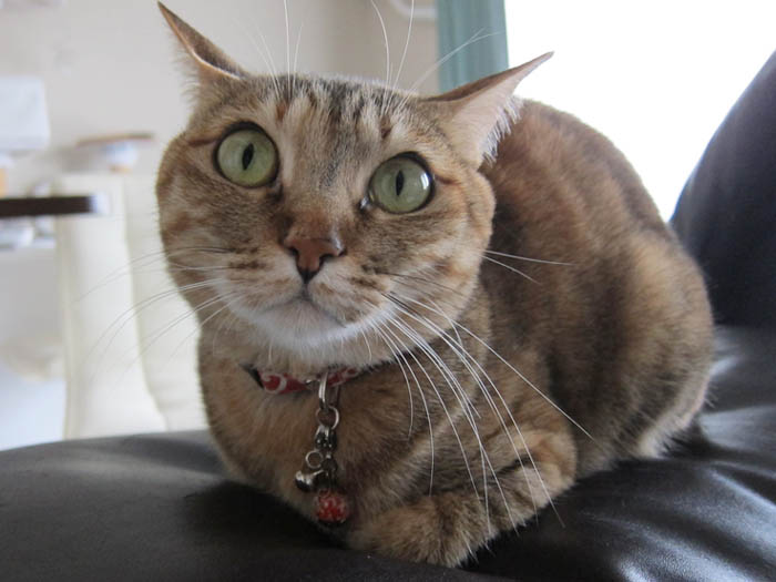ソファーの背もたれに座り、マッタリ中のぴっち♀。