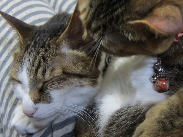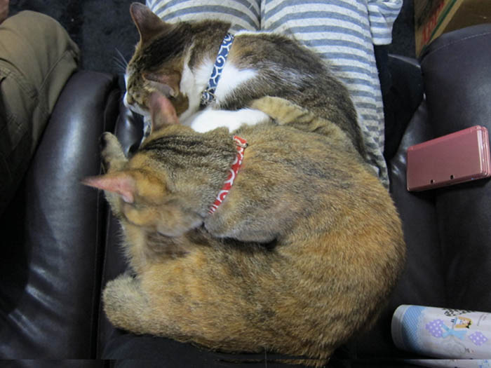 私の膝に乗っていたぽっけ♂の側にやってきたぴっち♀。