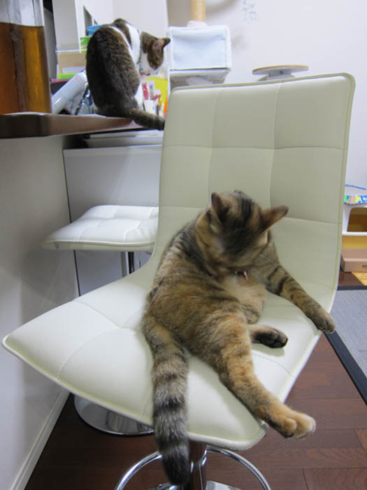 2011年 5/20(金) 1007日目のぴっち♀とぽっけ♂(2) ~動画~ぴっち♀がのんびり中のぽっけ♂に襲い掛かり、朝から猫プロレスが開催されました。