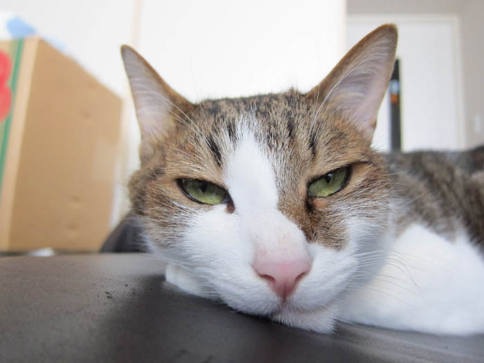 2010年 6/7(月) 660日目のぴっち♀とぽっけ♂ ~猫ベッドから~2匹揃って猫ベッドでもふーん。眠いせいもあってか、2匹揃って目つきが悪いです