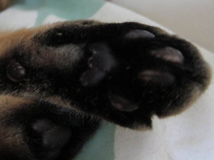が近づくとすぐに目を開けたぴっち♀。せっかくなので、肉球