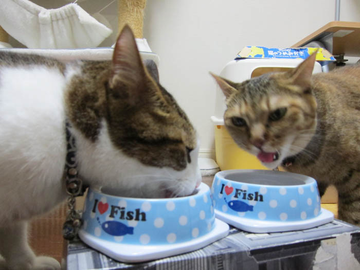 勢いよく食べる2匹。